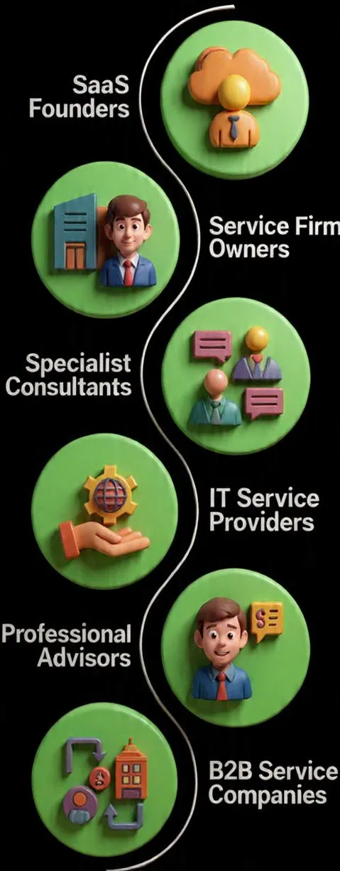 We focus only on SaaS and professional service firms doing ₹2Cr+, because our system has been tested and proven across IT services, consulting, digital agencies, and SaaS. The patterns of growth and blockers are the same.
